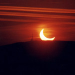 Východ Slnka počas jeho čiastočného zatmenia nad vrcholom Veľkej Javoriny.
