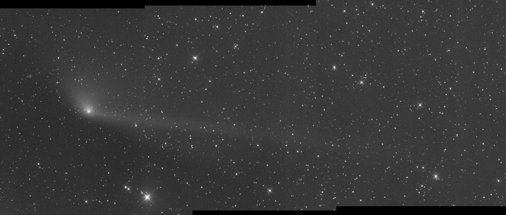Lov na jednu veľkú a niekoľko menších komét pokračoval aj 12.6.2013. Pekné počasie nás vylákalo pod hviezdnu oblohu aj v strede týždna. Tu je krátky report a niekoľko fotografii. Spolu s Tomášom som sa rozhodol v stredu večer vytiahnuť našu techniku aj napriek tomu, že ponocovanie pred pracovným dňom nie je to „pravé orechové“. Jednoducho sme neodolali. Po tradičnom rituáli skladania techniky do použitiaschopných zostáv sme sa pustili do snímkovania. Ja som urobil „povinné cviky“ v podobe niekoľkých sekvencií Panstarrsky, ako už familiárne nazývame C/2011 L4 Panstarrs. Kométa napriek tomu, že postupne slabne má stále svoje čaro. Obrázky sú pre jednoduchšie zobrazenie otočené, takže sever je vpravo, východ hore.