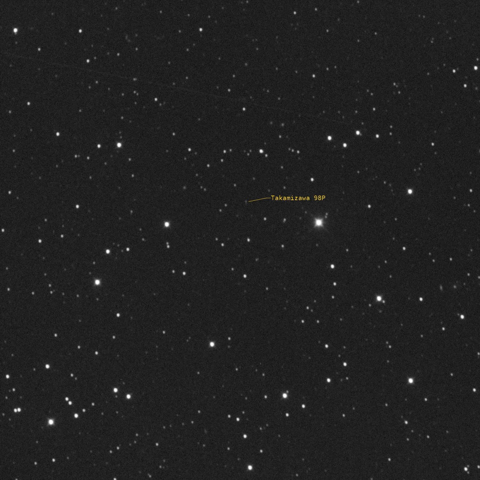 Tomáš vynechal Panstarrsku a od začiatku sa venoval slabším kométam, ktorých za neúplnú noc stihol štyri. Nasledujú obrázky aj vrátane anotácií, ktoré Tomáš vytvoril pomocou príslušnej funkcie v programe Pixinsight.