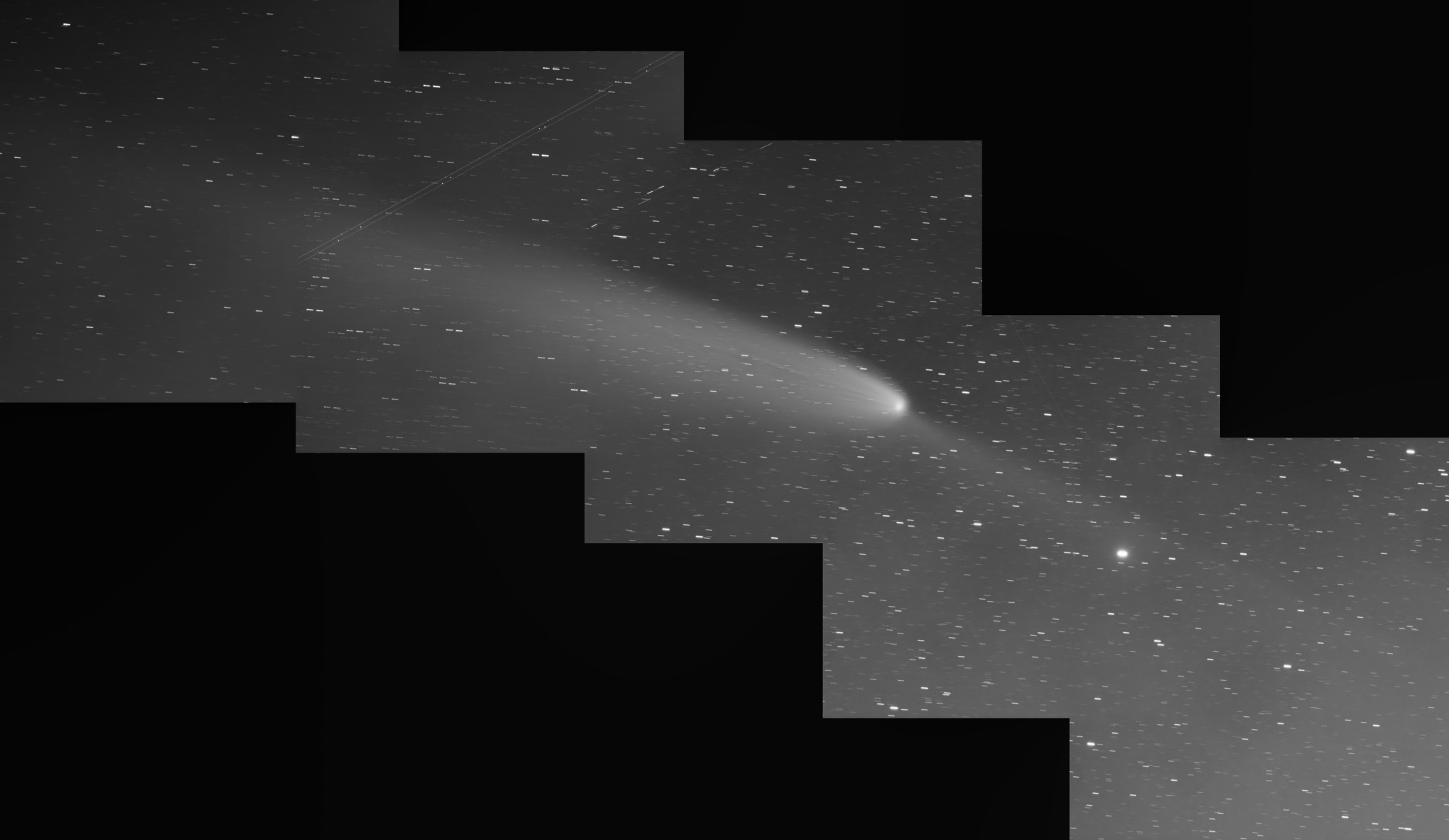 Na začiatku týždňa sa začal môj jednoznačne najkrajší lov na dlho sledovanú kométu A3. Keď sa v mysli vraciam späť do mojich prvých kontaktov s oblohou do r. 1997, tak tu a tam oprašujem od hrubých vrstiev času zážitky z komét. Každá z nich nesie svoje „naj“…Halle Bopp, najdlhšie pozorovateľná, išla stredom oblohy. Ikea – Zhang, prvý krát už aj s fotografovaním na montáži Frantu Michálka ručne pomocou skrutky. Holmes, 100 000 krát zjasnila a mne ušla skrz oblaky. Loveyoj Q4, boj s borovicami, Pannstarrs L4, jeden večer na pozorovanie s Mariánom v Plevníku. Neowise, úžasná kométa, ktorá nám takmer unikla skrz neprajné počasie a teraz od jari neprestajne upieram zrak na to ako postupne zjasňovala. Ešte niekedy naposledy v apríli sme ju s Jarkou nasnímali cez N300/1500 ako žubrienku okolo 10mag.