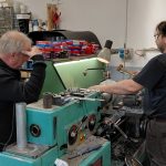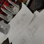 Medzitým Martin dokončoval puzdrá na RA os. Pomáhalo mu k tomu kopec výkresov a odborný dozor v podobe Peťa. Zvedavosť ho našťastie premohla a prišiel sa pozrieť čo tu kutíme.