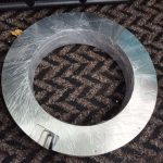 Po obrobení posledných puzdier osí, Martin začal vyrábať montážne platne na prichytenie platne a prichytenie druhej osi. Tieto disky sú hliníkové a na poslednom obrázku je ukážka „zloženej“ deklinačnej osi. Presnejšie je to puzdro tejto osi. Vľavo je vidieť vybranie na pohon a v ofrézovanej dosadacej ploche je diera na prechod kabeláže. Všetky káble totiž pôjdu vnútrom montáže. Je to tak bezpečnejšie aj elegantnejšie.