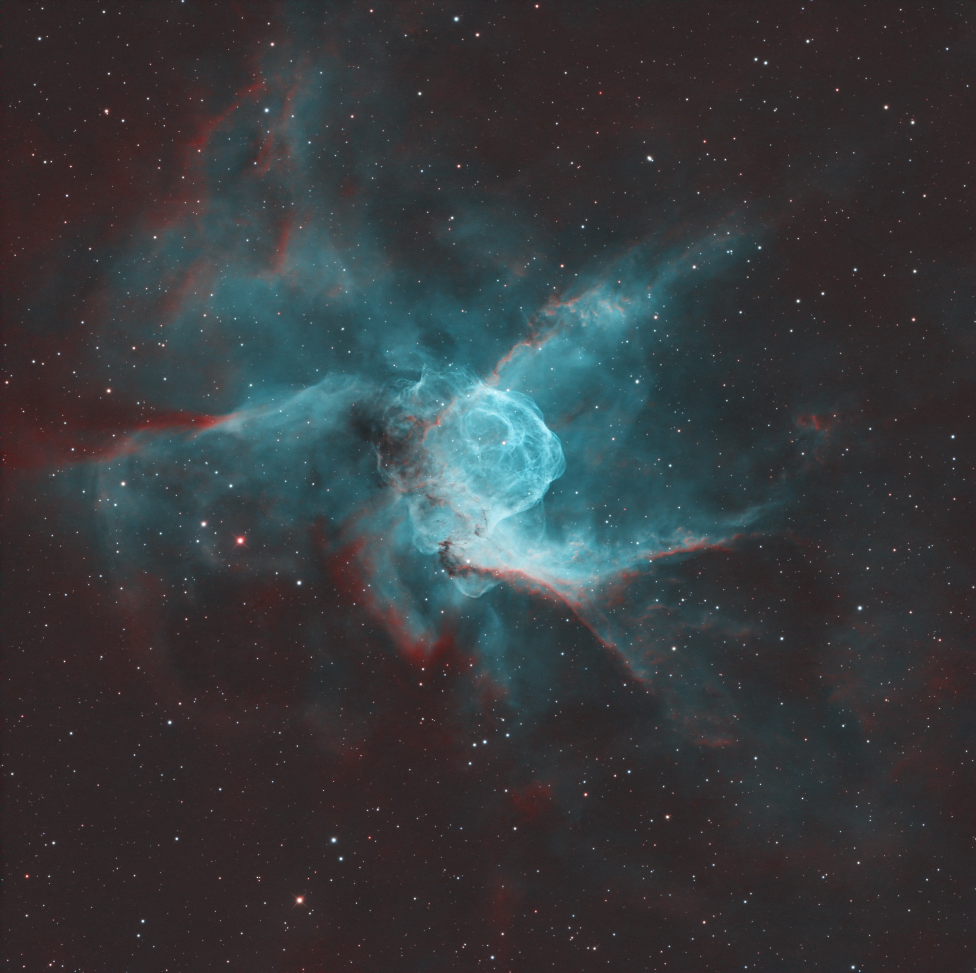 Obrázok vznikol zložením 12x300s snímky cez filter Ha a 23x300s snímky cez filter O3. Fotografoval som cez astrograf newton 300/1200 kamerou ZWO ASI 533MM.