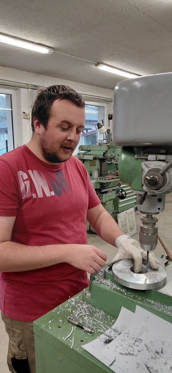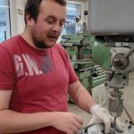 Práce sme si podelili, jeden sa venoval označovaniu dier, druhý vŕtal diery. Následne ten prvý začisťoval hrany. Neskôr sme rovnakým spôsobom pracovali na závitoch.