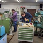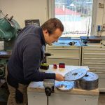 Nás čakalo tentoraz vŕtanie dier a závitov do diskov primárneho prevodu. Ďalej vŕtanie dier, závitov a zahĺbení do diskov enkodéra. Zároveň sme začali vytvárať finálne páry týchto diskov (prevod a enkodér), aby sme ich neskôr spolu správne zmontovali. Vybrané dvojice boli vždy osadené kolíkmi, aby sme ich nasadzovali rovnakým spôsobom.